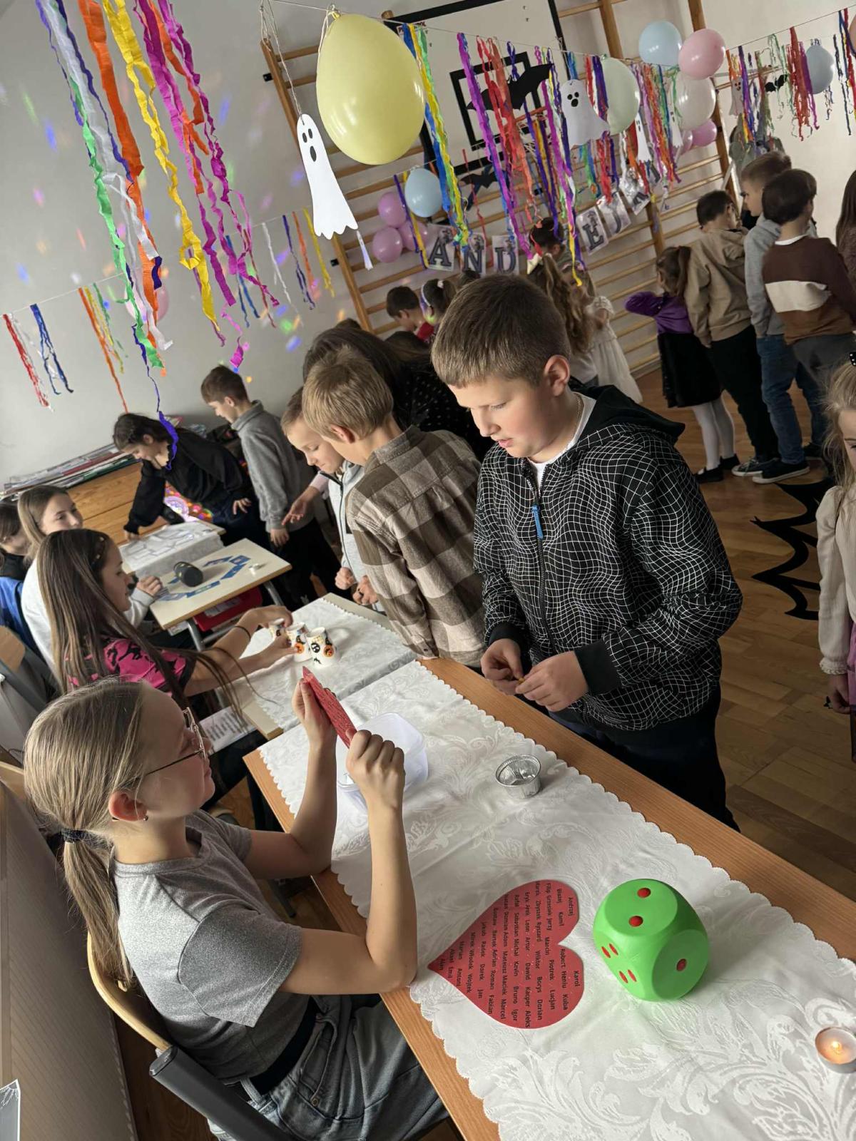Przed południem w andrzejkowym nastroju bawiły się dzieci z oddziału przedszkolnego oraz klas 1–3, natomiast po południu swoją zabawę mieli uczniowie klas 4–8.