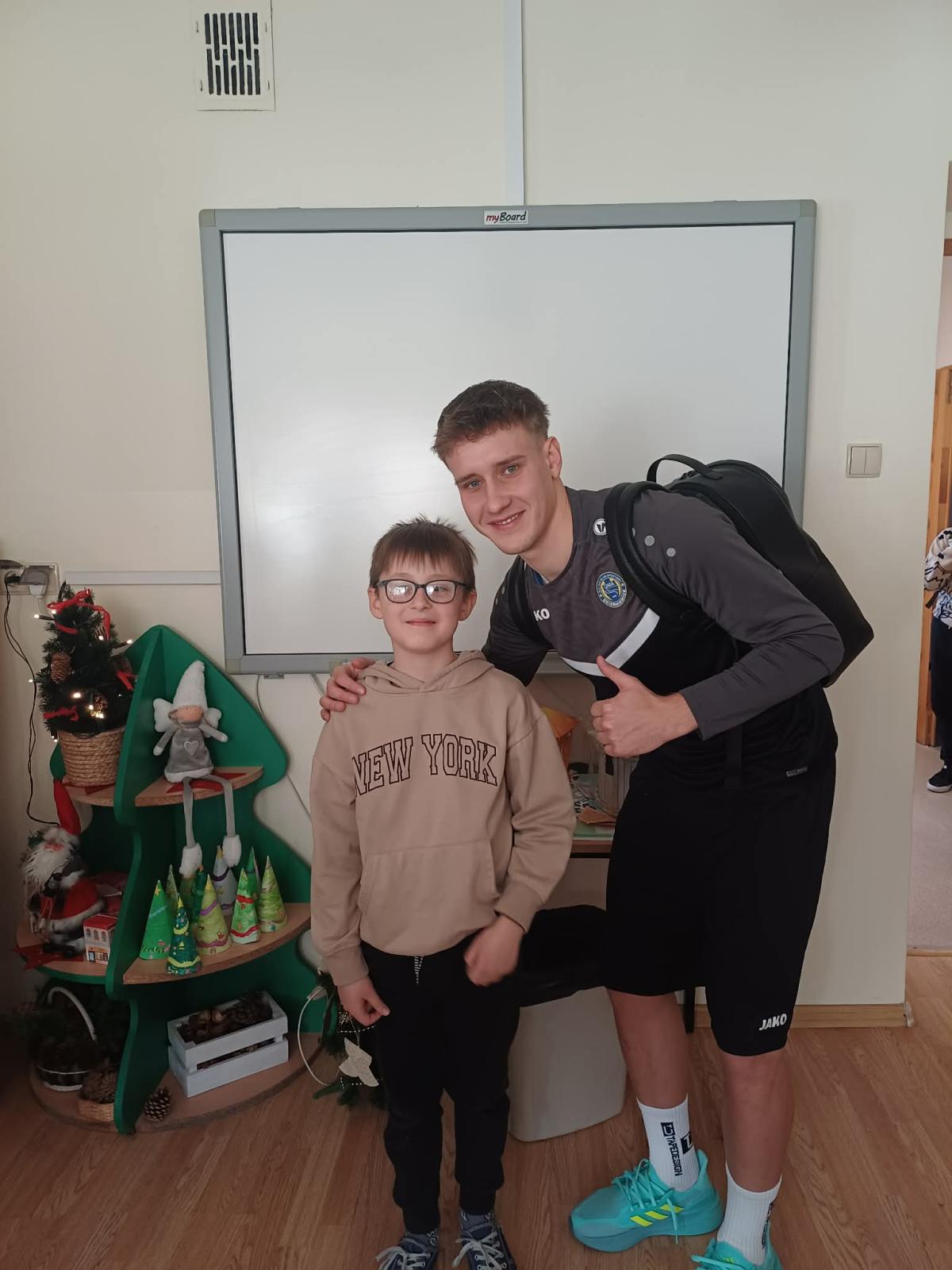 Piłkarz zwrócił uwagę na znaczenie systematycznego treningu, samodyscypliny oraz odpowiedniego przygotowania mentalnego. Podkreślił, że konsekwencja, cierpliwość i ciężka praca są kluczowe w dążeniu do realizacji sportowych marzeń. Uczniowie mieli również możliwość zadawania pytań, na które gość chętnie odpowiadał, dzieląc się własnym doświadczeniem. Po zakończeniu spotkania piłkarz rozdawał autografy oraz chętnie pozował do pamiątkowych zdjęć z uczniami.