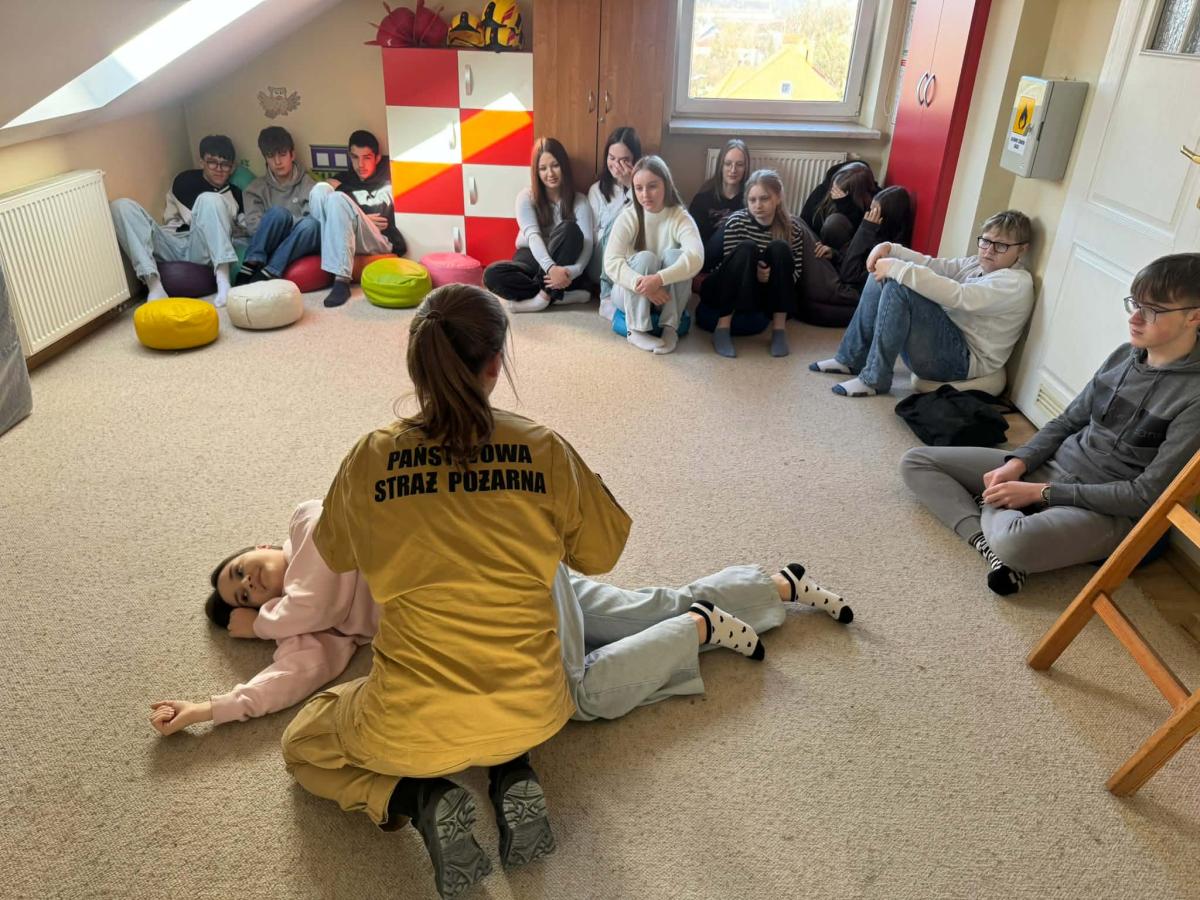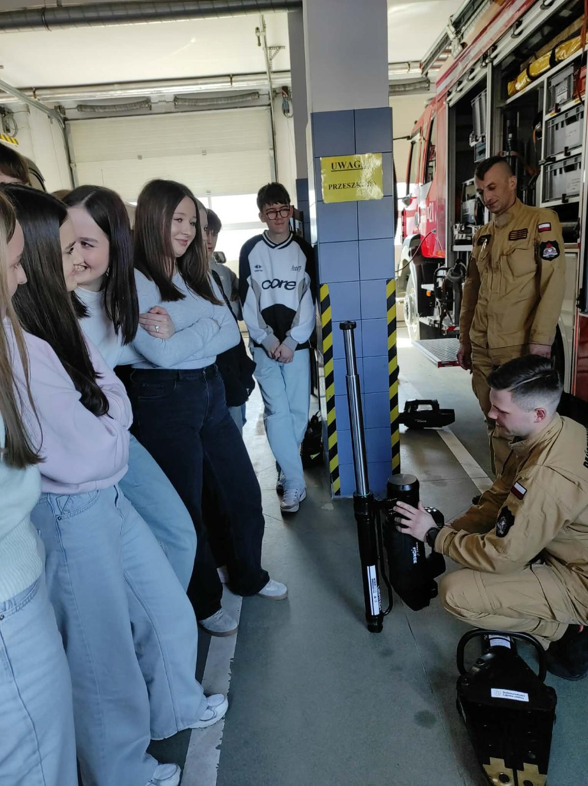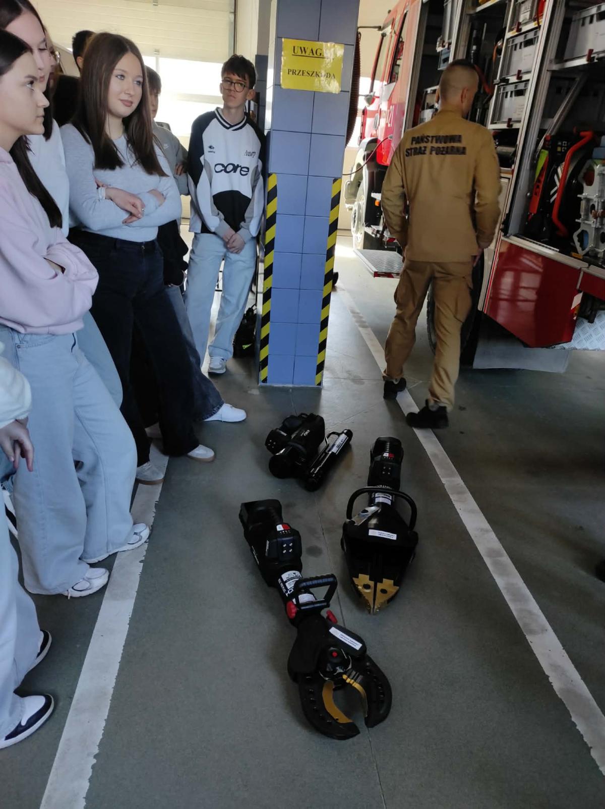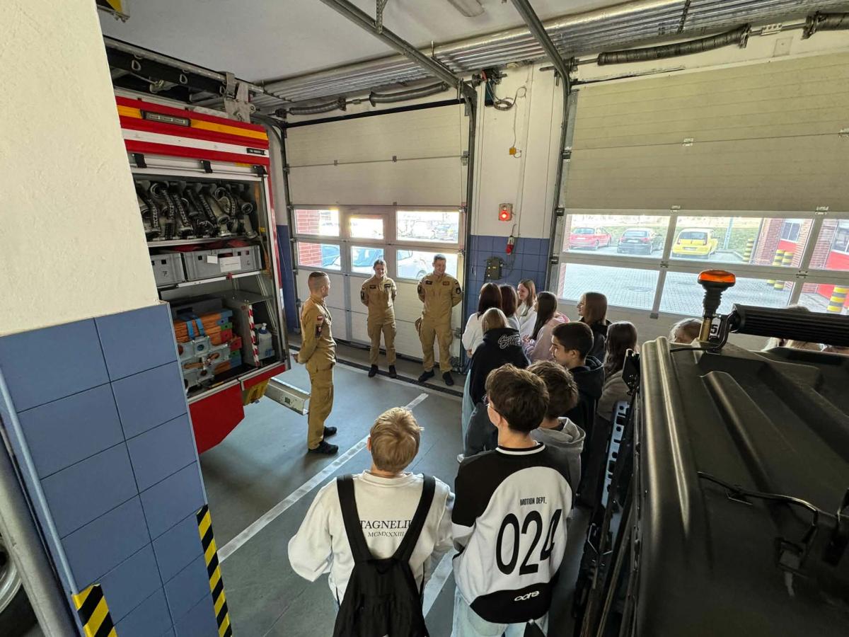 Dużym zainteresowaniem cieszyła się część praktyczna, podczas której uczniowie mogli zobaczyć z bliska sprzęt ratowniczo-gaśniczy oraz wyposażenie wykorzystywane podczas akcji ratowniczych.