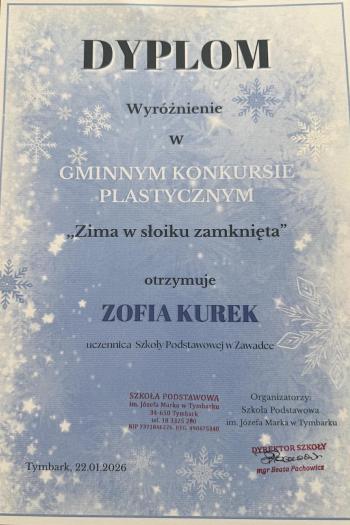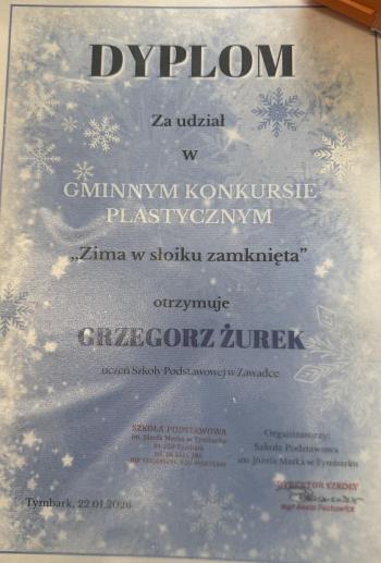 Galerie zdjęć Gminnym konkurs plastyczny „Zima w słoiku zamknięta” 28.01.2026 Bal karnawałowy 27.01.2026 Karnawałowa dyskoteka klas IV–VIII 27.01.2026 Muzyczny sukces naszego ucznia! 26.01.2026 Zimowe przygody na lodzie klas IV–VIII 26.01.2026 Dzień Babci i Dziadka 26.01.2026 Przerwa z grą 24.01.2026 Zimowe zabawy na świeżym powietrzu w świetlicy szkolnej 19.01.2026 Powiatowy Konkurs "Ekologiczny Stroik Bożonarodzeniowy" 15.01.2026 Spotkanie z zawodowym piłkarzem – Krzysztofem Toporkiewiczem 25.12.2025 JASEŁKA I WIGILIE KLASOWE 19.12.2025 Konkurs recytatorski „Spotkanie z poezją” 19.12.2025 V Międzyszkolny Konkurs Kolęd i Pastorałek „Gore gwiazda Jezusowi” 18.12.2025 W świecie Baśni Andersena 16.12.2025 Wycieczka do Smoczej Osady 9.12.2025 Mikołaj w oddziale przedszkolnym. 9.12.2025 „Edukacja z wojskiem” w szkołach już po raz czwarty! 9.12.2025 Spotkanie ze Świętym Mikołajem w Bibliotece Publicznej 5.12.2025 Realizacja I i II modułu projektu edukacyjnego„Natalka i Antek w Świecie Wielkiej Matematyki” – edycja 2025/2026 2.12.2025 "10 powodów, dla których warto czytać książki” 28.11.2025